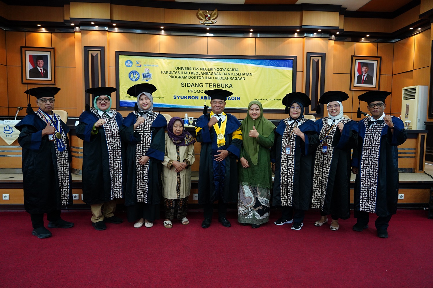 Yogyakarta — Fakultas Ilmu Keolahragaan dan Kesehatan (FIKK) Universitas Negeri Yogyakarta menyelenggarakan Sidang Terbuka Promosi Doktor atas nama Dr. Syukron Arif Muttaqin, yang juga dikenal sebagai anggota DPRD Kabupaten Sleman. Sidang berlangsung dengan khidmat dan menandai keberhasilan promovendus meraih gelar doktor setelah mempertahankan disertasinya di hadapan dewan penguji.