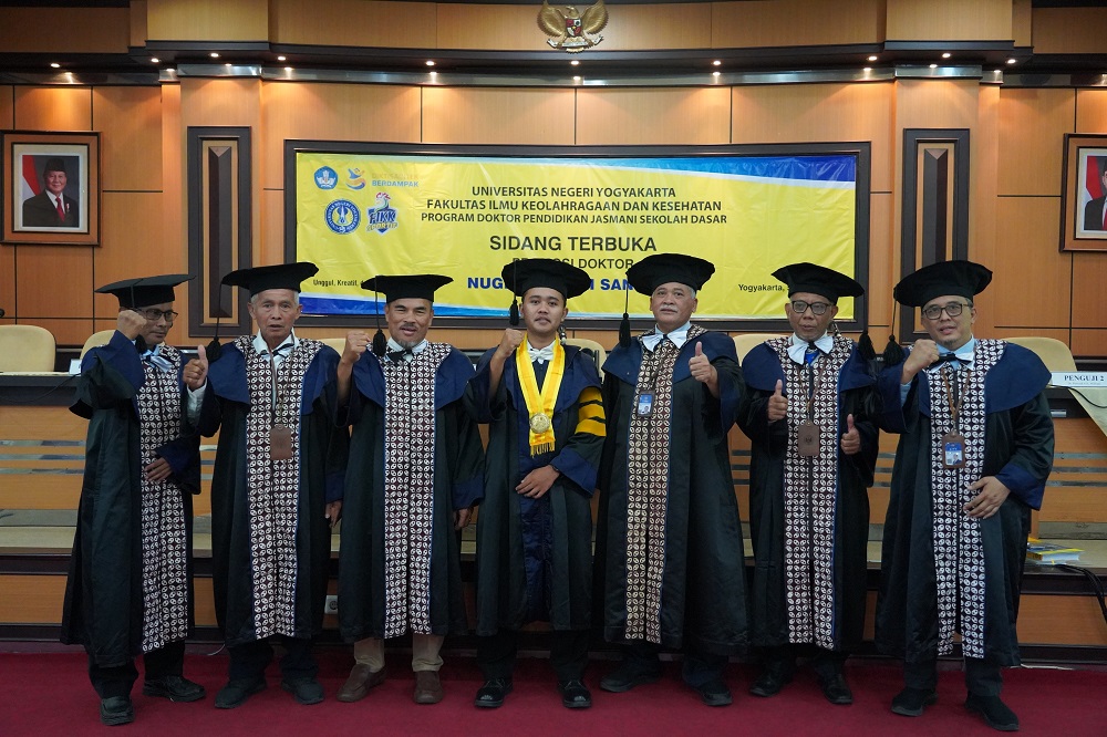 Fakultas Ilmu Keolahragaan dan Kesehatan Universitas Negeri Yogyakarta (FIKK UNY) kembali menyelenggarakan Sidang Terbuka Promosi Doktor dengan promovendus Dr. Nugroho Puji Santoso, S.Pd., M.Pd., dosen Departemen Pendidikan Jasmani Sekolah Dasar (PJSD) FIKK UNY.